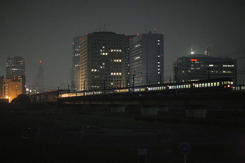 小雨の大井町。手前の橋をかわすには超望遠が必要。