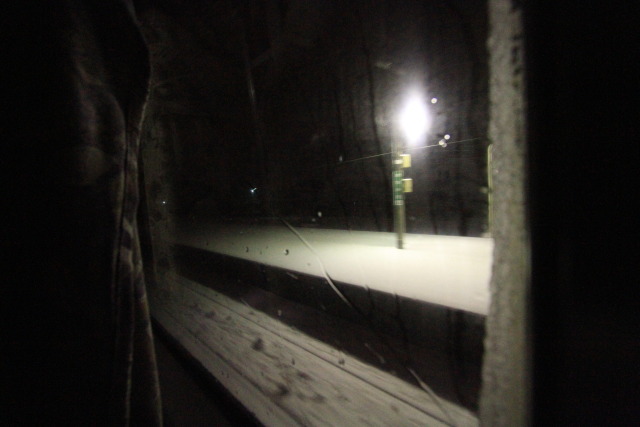 深夜に遅延の「日本海」に道を譲って10分程度の遅れで凍てつく闇の世界を黙々と走る。