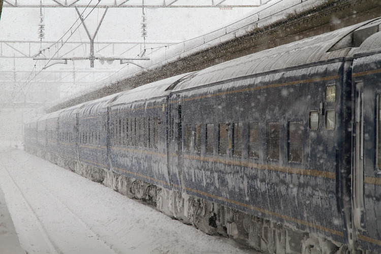 そして列車は雪が着いた列車を期待しましたが、カシオペアはヘッドマークだけ隠される中途半端な状態に・・・