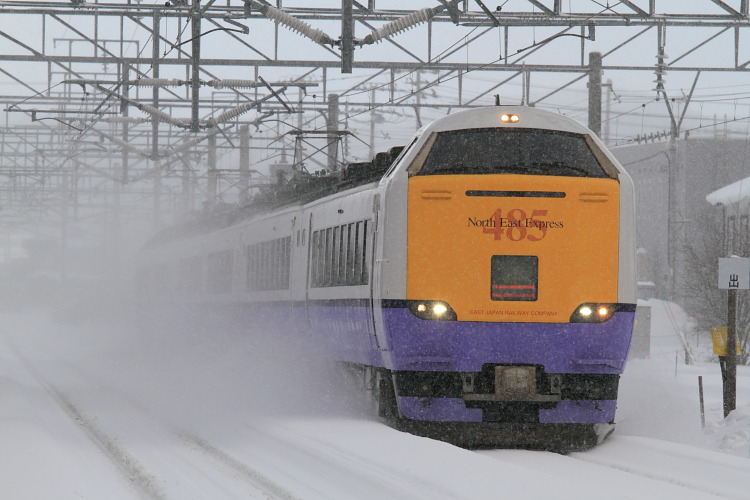 雪の中でもスピードが落ちないのが鉄道の特権。